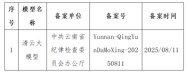 云南省生成式人工智能服务已备案信息